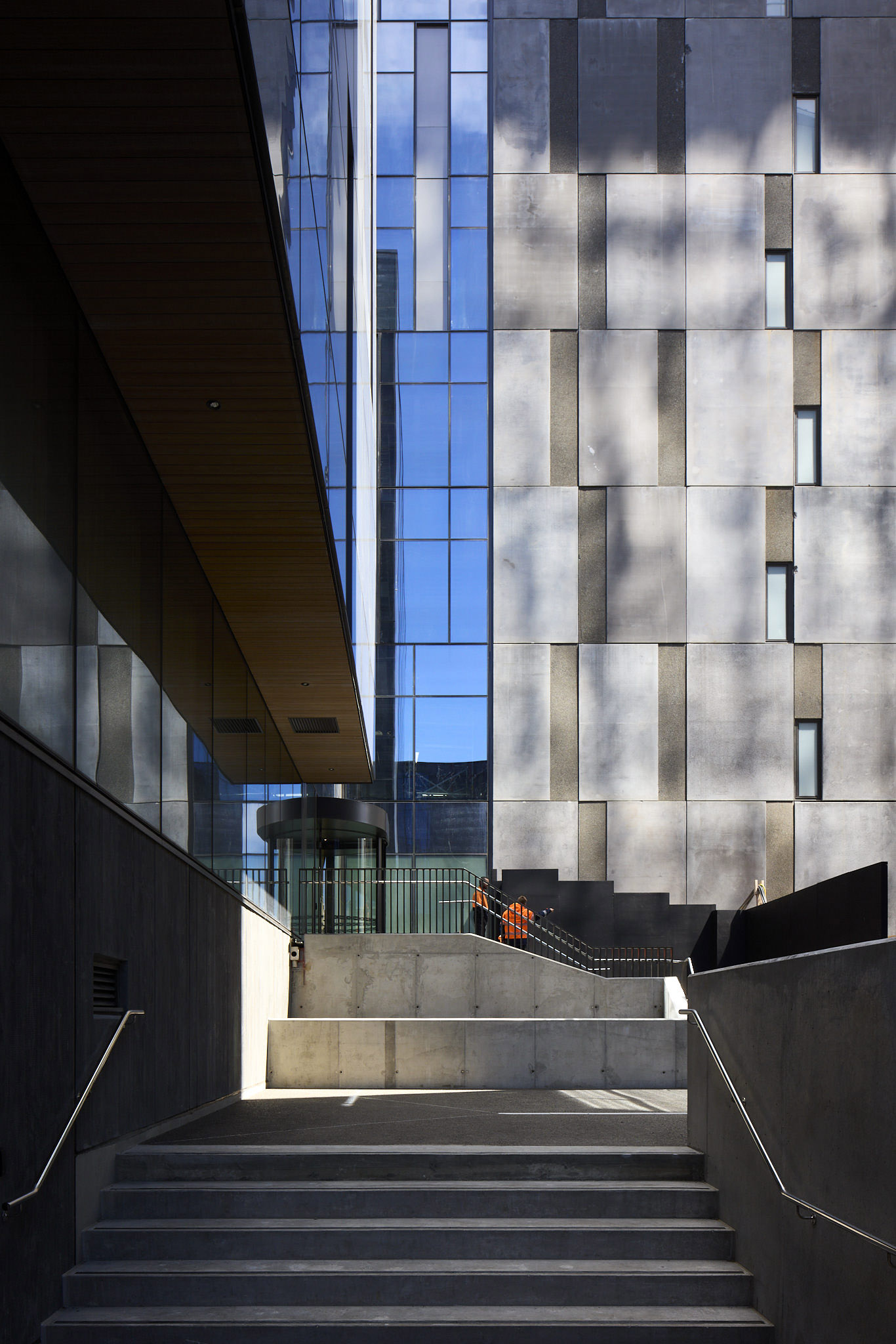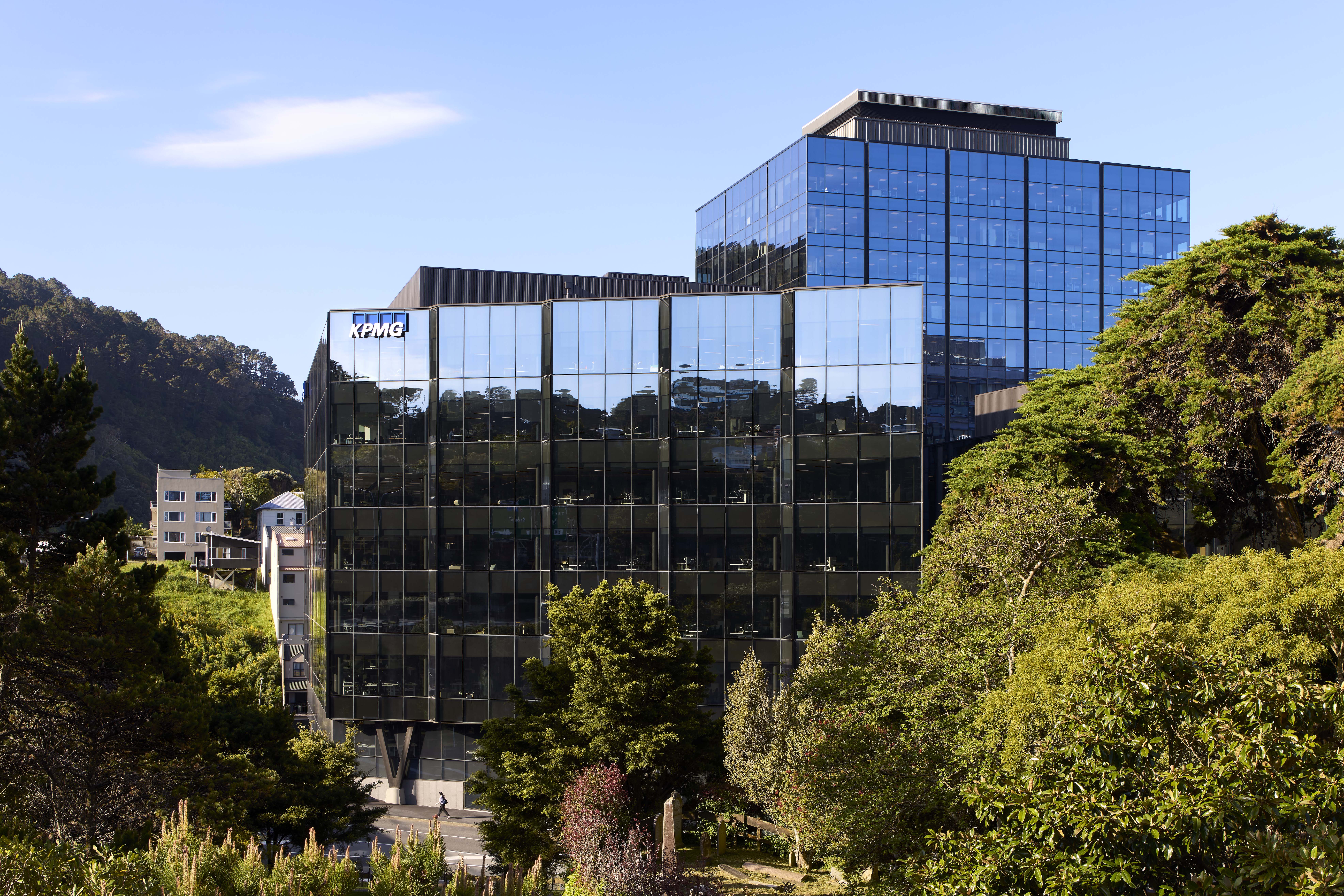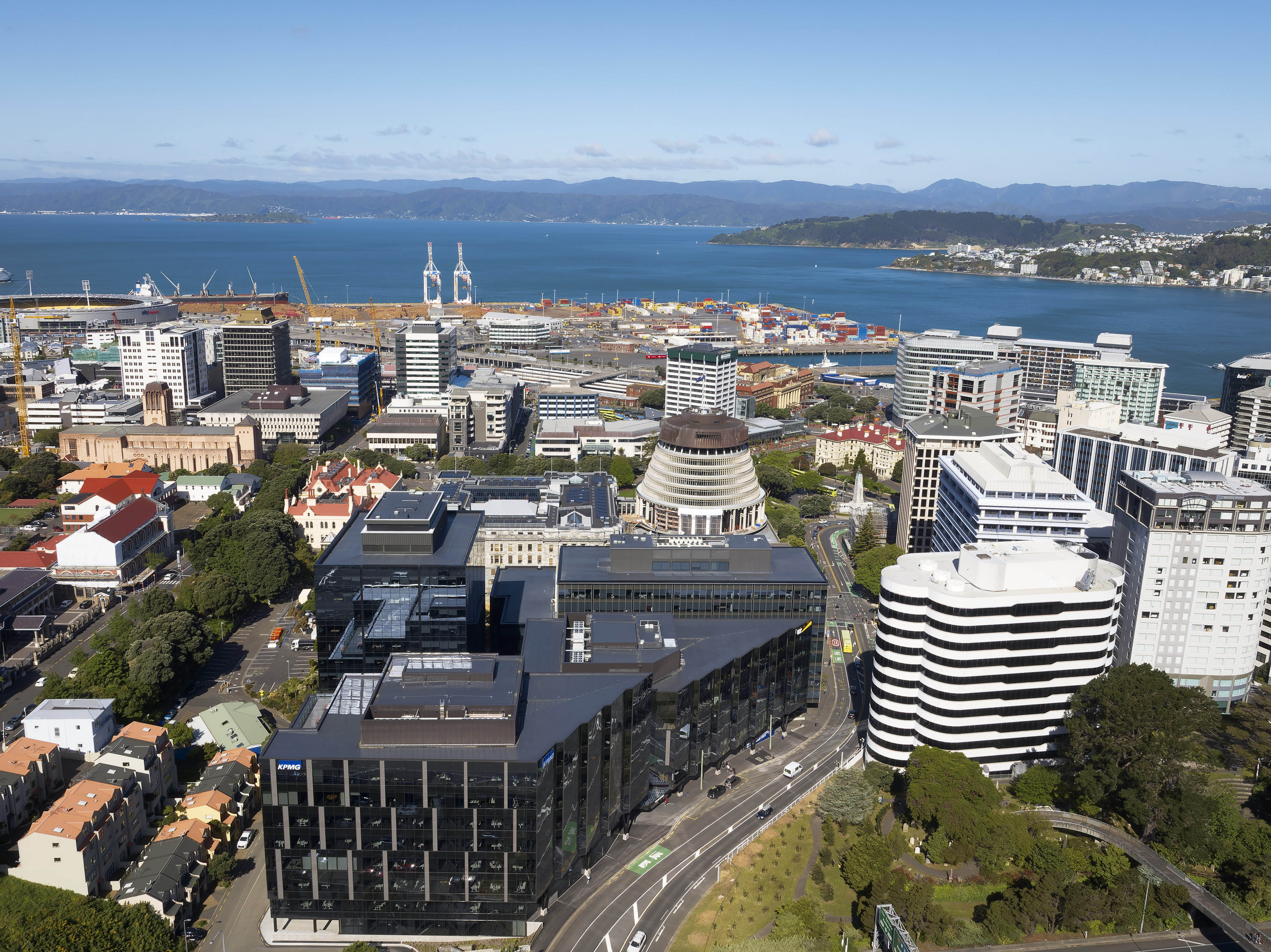 The project strategically addresses a key site left in disarray since the 2008 Global Financial Crisis. New life is given to the heart of the parliamentary precinct by creating two buildings that are braced against the old bones of Charles Fergusson Tower and Bowen State Building. Landscaped laneways connect to the giant Bowen Campus; it’s warm heart can be seen in the shared atrium of the new buildings. The double-height space, clad in timber and adorned with greenery, gives respite from the busy surroundings. The buildings carefully address all sides of the site, including the challenging Wellington Urban Motorway to the west. The Bowen St façade cleverly addresses the concave curve of the street, while the generous footpath improves the pedestrian experience. Finely detailed ‘fins’ add dynamism to the sawtooth façade, which is also reflected inside. The technological response to earthquake resilience is innovative and materials enhance sustainability, granting the building a 5-star Green Star rating.