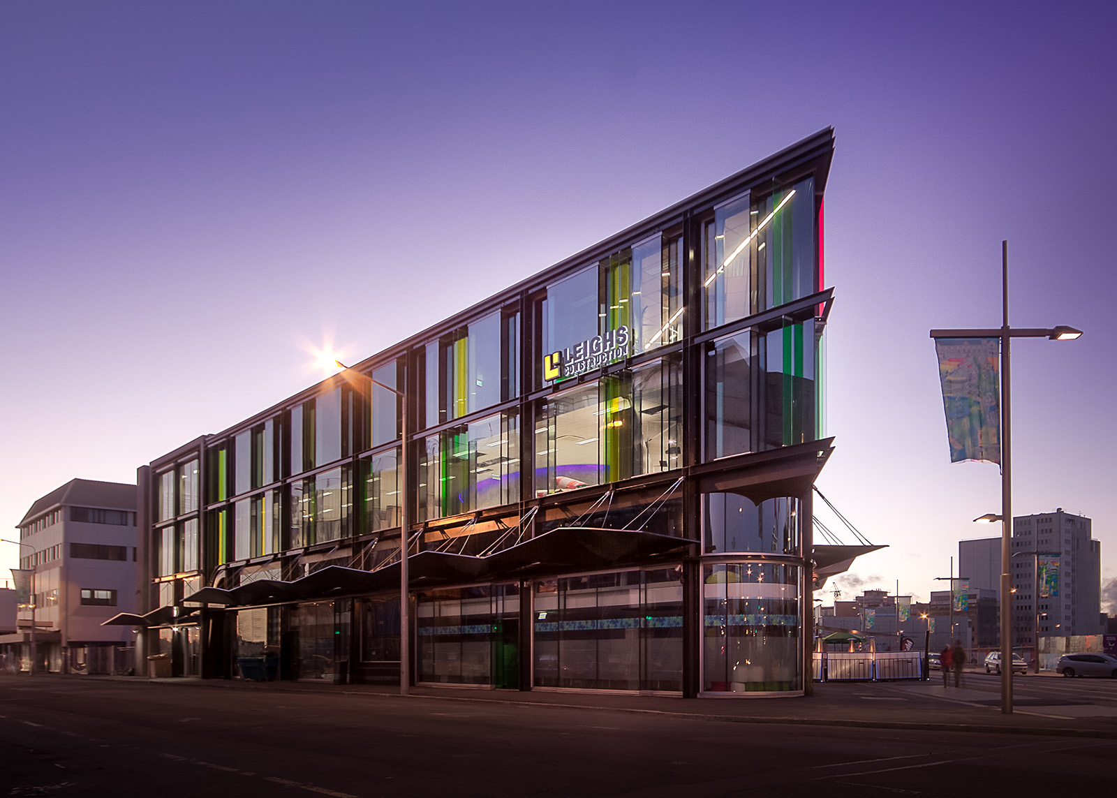 Client and architect set out to make a cosmopolitan, industrious and joyful place on a prominent urban site, and they have succeeded admirably. The building presents a glazed face, intended to have a jewel-like effect, to the city; at the same time, a public laneway to a protected courtyard offers sanctuary from traffic and street noise. The mix of ground-level retail and hospitality spaces and upper-level offices creates its own mini-precinct, a modern village with an urbane disposition. Elements such as the half arches that squeeze space before releasing it in the laneway and interior courtyard reveal the architects’ understanding of people-scaled planning: they know what makes small city places work. This commercial building makes a fine contribution to the new Christchurch.