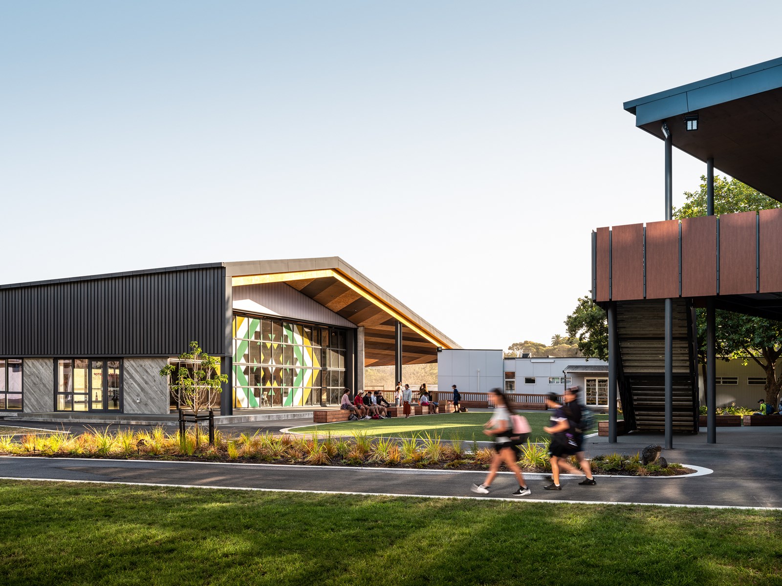This new co-educational, co-governance secondary school alongside a Māori immersion kura and TAPAC performing arts centre replaces a high school built in 1963 on a landfill site over a historic lava flow. Photo by Dennis Radermacher.