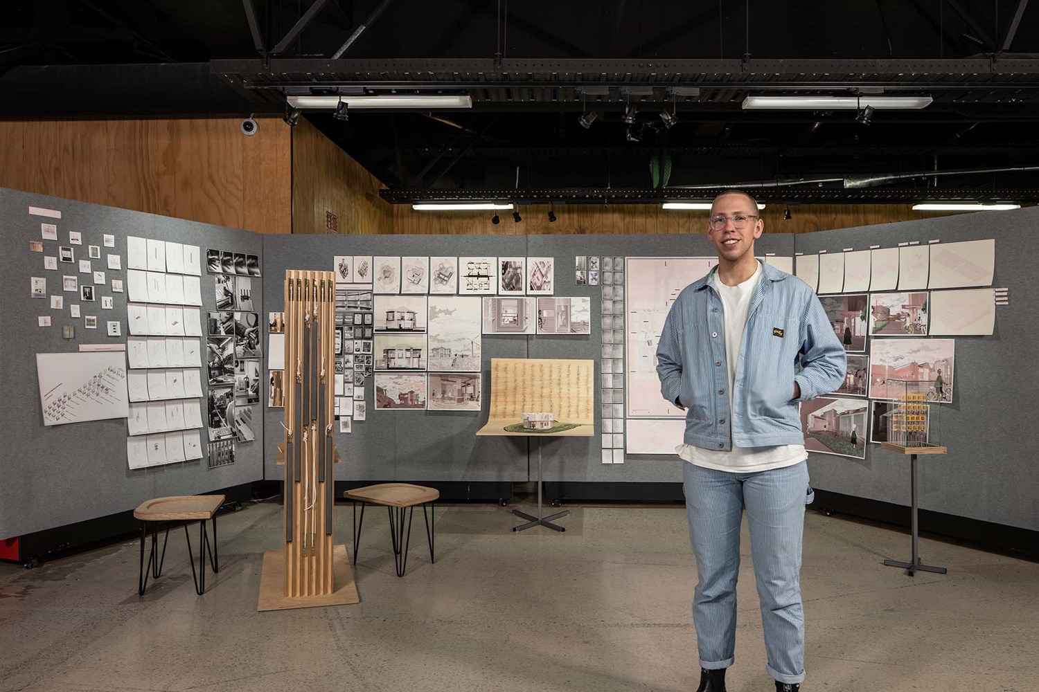 William formulated a three-part process for his project: an installation, followed by domestic co-housing, and finally an urban assemblage in the Cuba Street area. By taking the body as the starting point for his architecture, this thoughtful young designer successfully challenges ideas around privacy, safety, and community, and reveals the ways queer methodologies lead to fairer and more dynamic outcomes, especially for those in LGBTIQ+ communities, for whom the built environment is so often hostile.