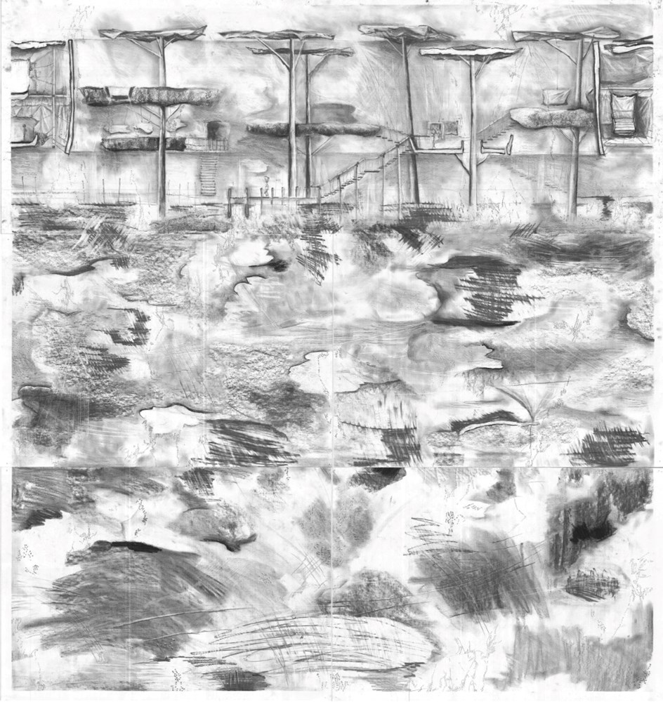 As Pākehā in Aotearoa, this relationship feels turbulent as I don’t whakapapa to a particular soil. Through drawing, the relationship is explored to reveal its shifting currents, which are infused in graphite on paper. The architecture that results captures a journey of belonging, entangled relations and identity.