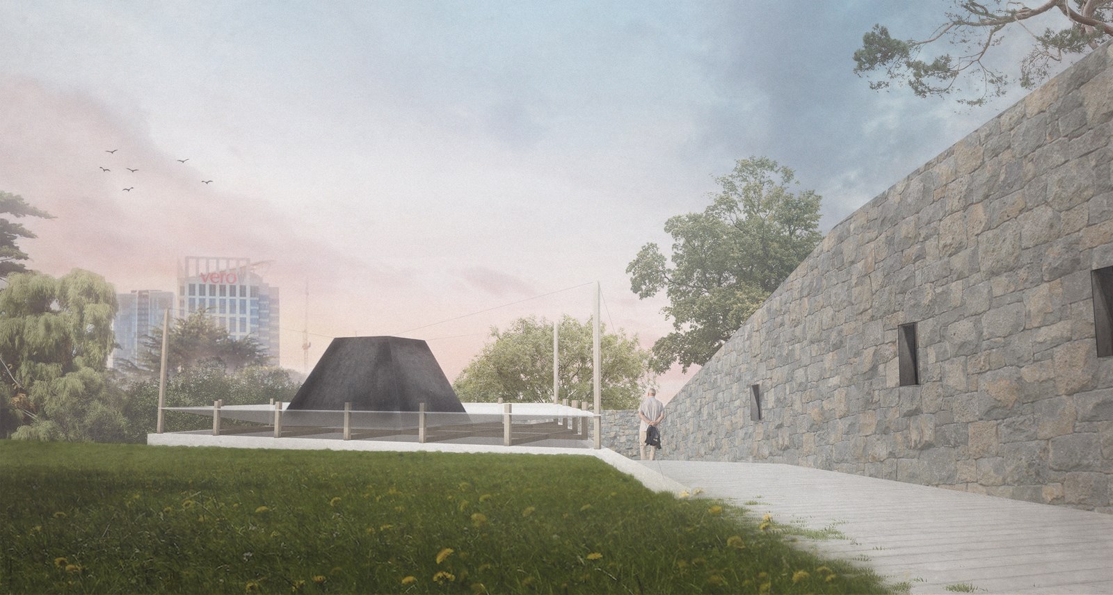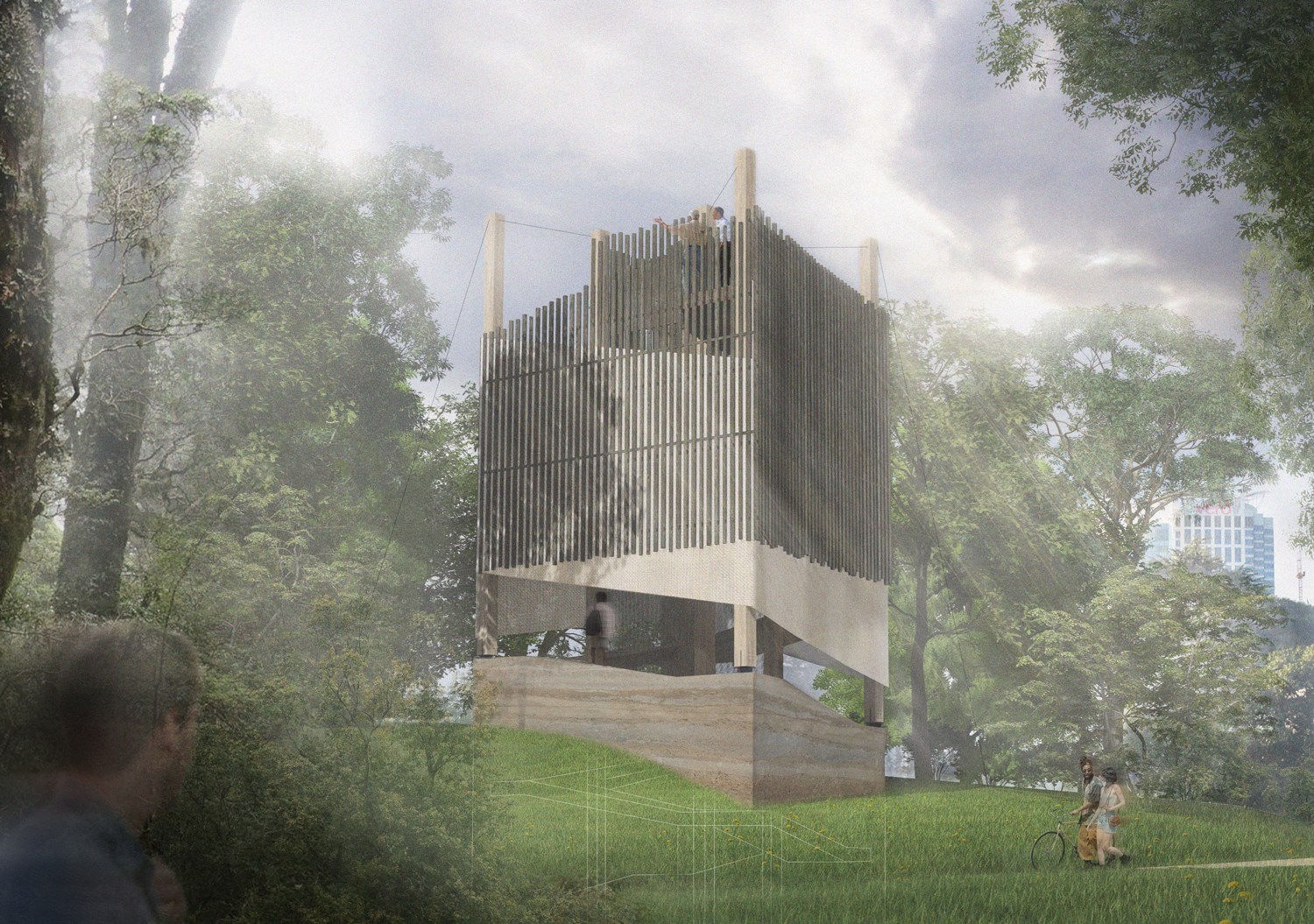 The idea of this project is to use a sensory approach to bring these layers of history closer to all visitors to the park, be they locals, tourists, or school groups. The project’s design suggests a series of small architectural interventions, each of them dedicated to one specific layer of history and evoking a particular set of senses.