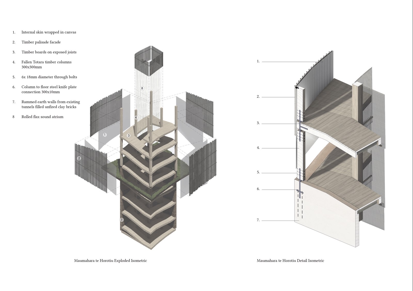 The design seeks to honour and acknowledge the site's significant heritage in a gesture of respecting all of the project’s many cultural layers, enabling the past to thrive by empowering its entry into the present. However, the project does not aim to dictate the park’s overall development since there would be many different approaches. Instead, it seeks to educate users and enhance the space, showcasing Aotearoa’s identity through the directness of our senses. Thus, these structures serve as a means of storytelling, evoking emotions and providing a multi-sensory experience to establish an authentic sense of belonging and identity.