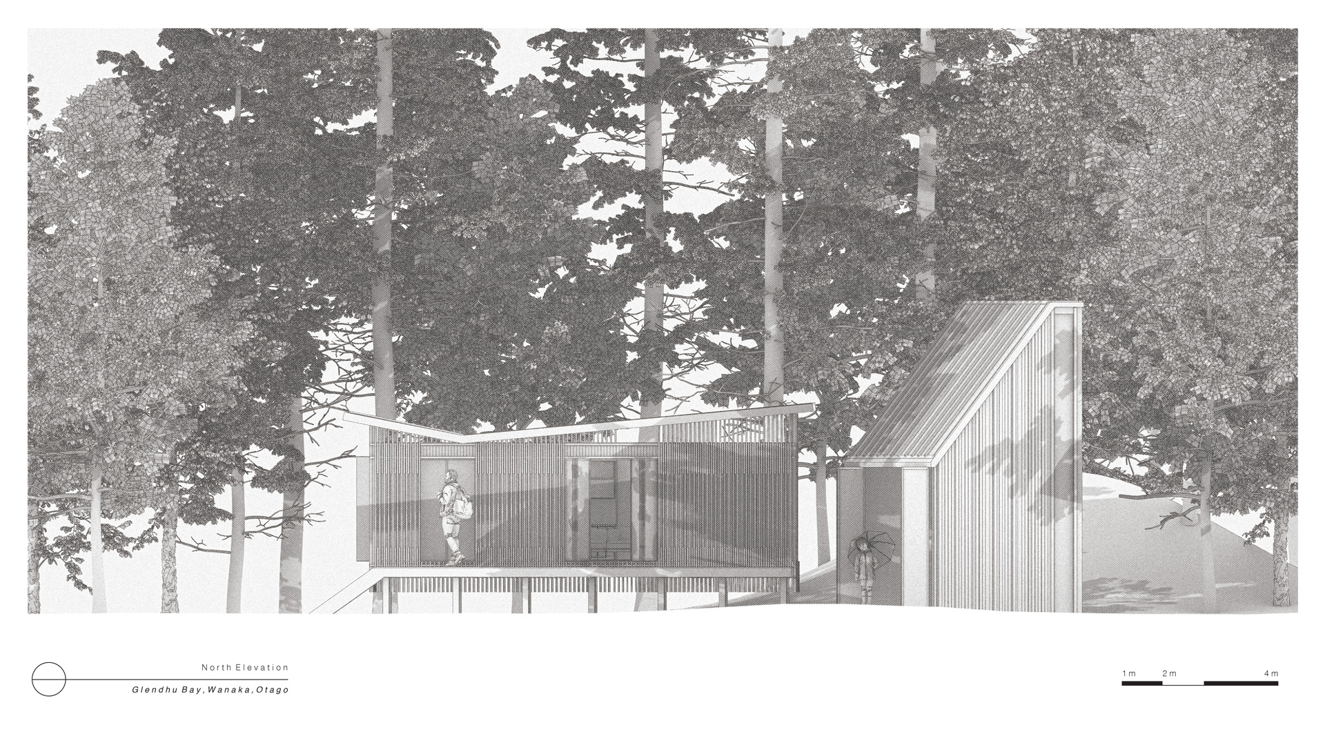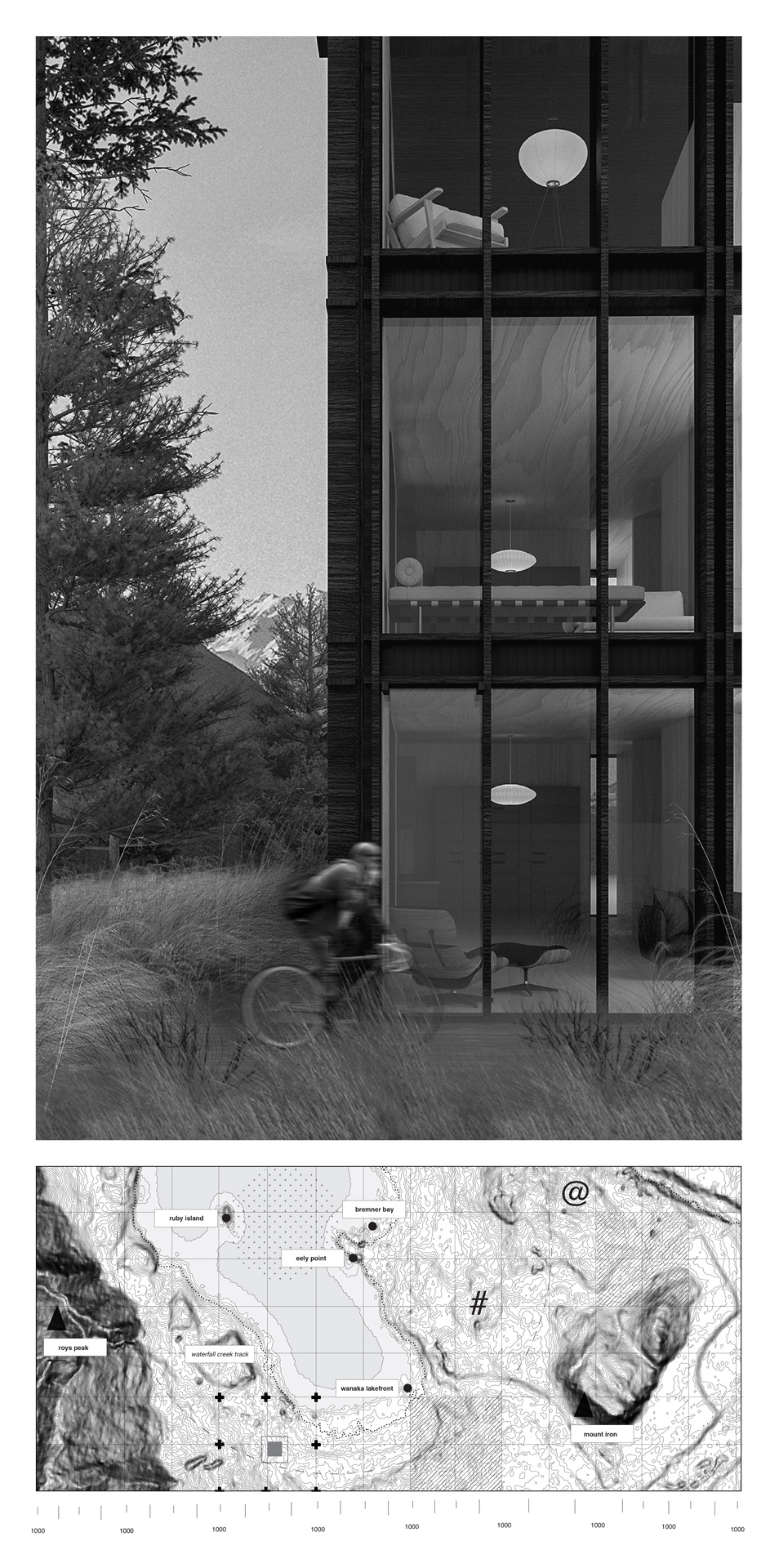 Algorithmic Abodes explores the intersection of architecture, automation and environmental stewardship. Automation is used to optimise measurable aspects of residential architecture, such as efficiency, precision and sustainability, while allowing the architectural design to transcend into something unmeasurable, fostering a relationship between people, the land and its environment.