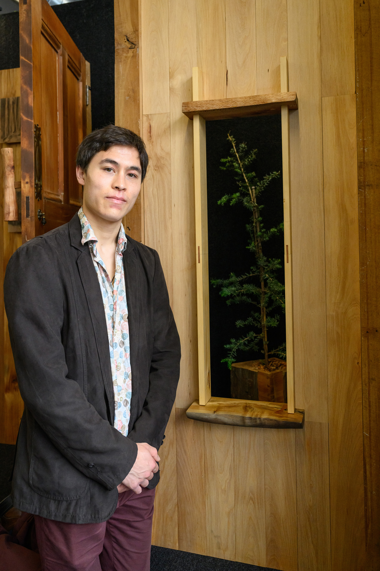 Max Young from Te Herenga Waka—Victoria University of Wellington, Te Kura Waihanga—School of Architecture is a finalist for his project 'Ngā Pūrākau: On the Many Stories of Wood'.