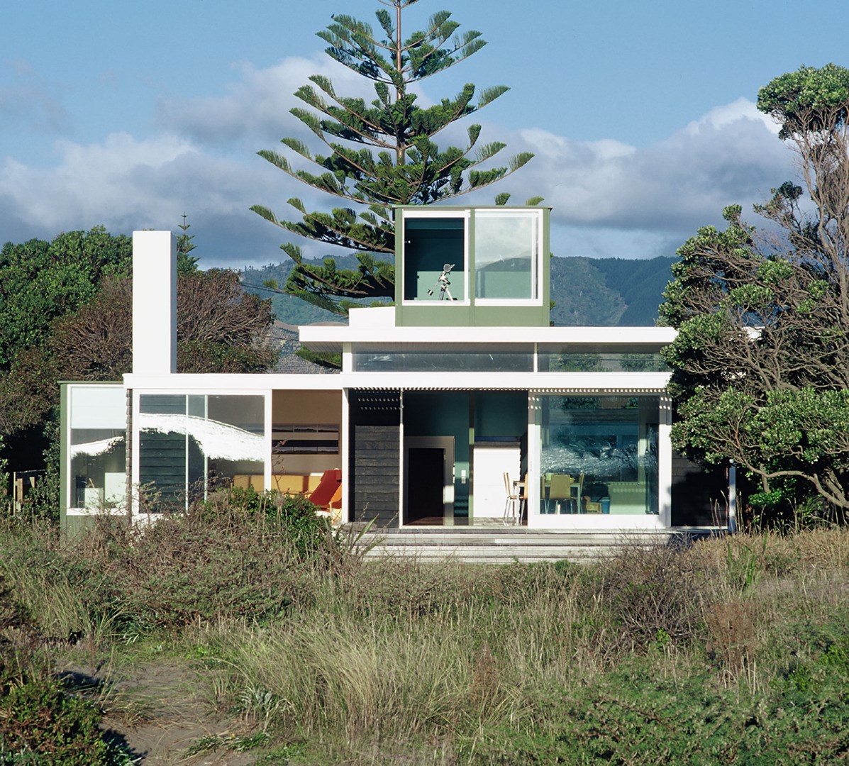 An imaginative, thoughtful and rewarding sequence of spatial experiences from when you first arrive. Moving through the semi-enclosed spaces leading up to the entrance and then into the interior where the living area dramatically opens the house up to its coastal environment. The drama continues off the open living area along a passage enriched with colour and light into the more enclosed intimate sleeping areas. Faithful to the traditions of the bach and holiday living, this is a thoroughly honest house that sits gently on the land with an unassuming presence. It is assured but not assertive. Simple but still rewards the viewer with subtle complexities that always have a sound architectural reason for their presence. It is a house that has its roots in this country that all jury members immediately recognised, responded to and felt completely at home in.