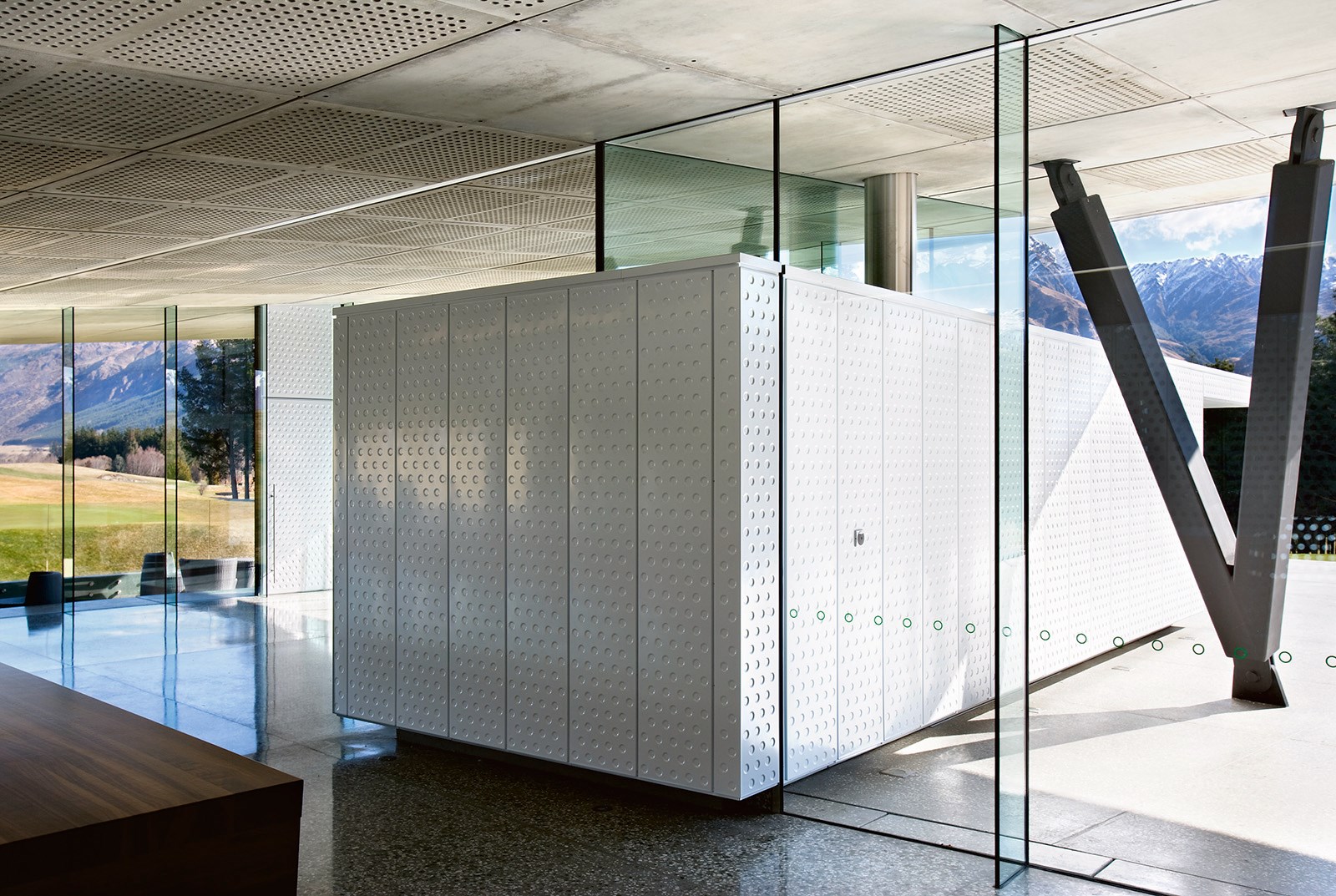 The pavilion perfectly houses the clubhouse programme involving back of house support, entertainment and observation and makes a splendid divot like sculpture just off the eighteenth green. The expressive use of structural engineering and reflective interiors make a memorable entry to the course and a triumphant nineteenth hole.