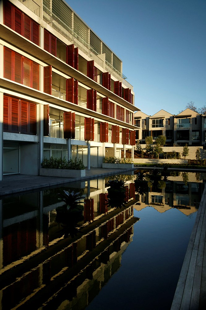 Careful analysis of intensive housing typologies and the particularities of the site have led to a clever massing of form and an arrangement of apartments that produces a rich streetscape, a private garden realm within and a good mix of apartment sizes and orientations. The project is proof that apartment building design can provide high quality environments and make significant contributions to the urban landscape.
