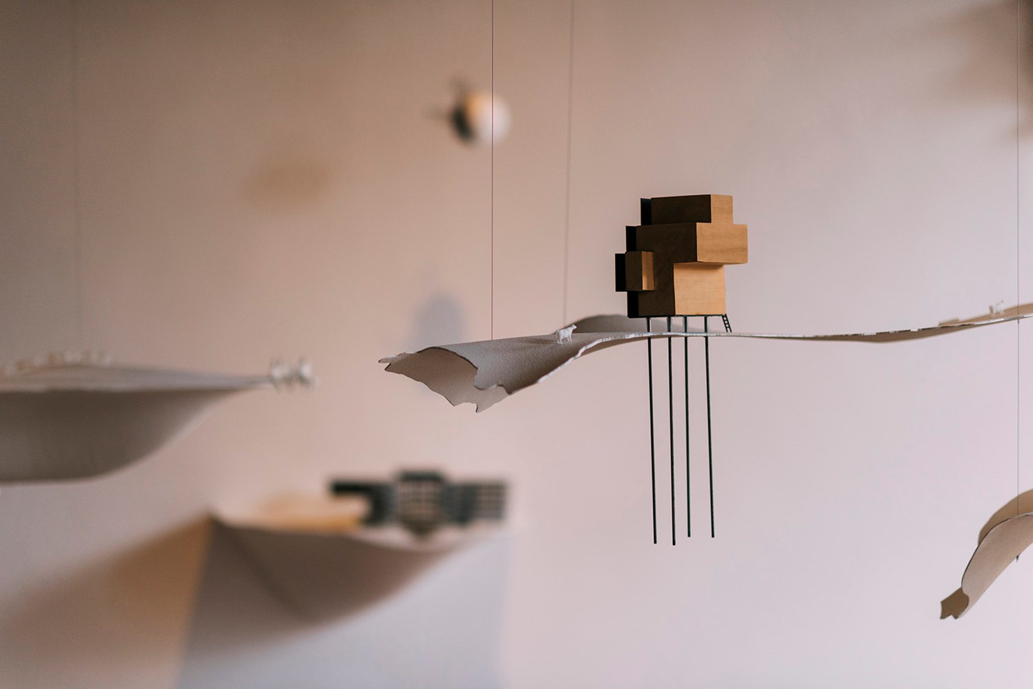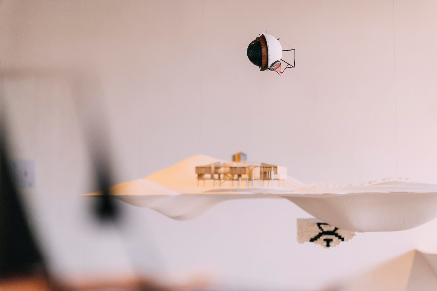 We were also conscious of the traditional New Zealand understanding of architecture – that design is generated by landscape. We’ve addressed that in a very obvious way. In the exhibition the models don’t necessarily relate to their ‘island’ sites. They’re literally up in the air – the earth has been shaken up and the buildings have been bounced around. Corny, perhaps, but also seismically appropriate.