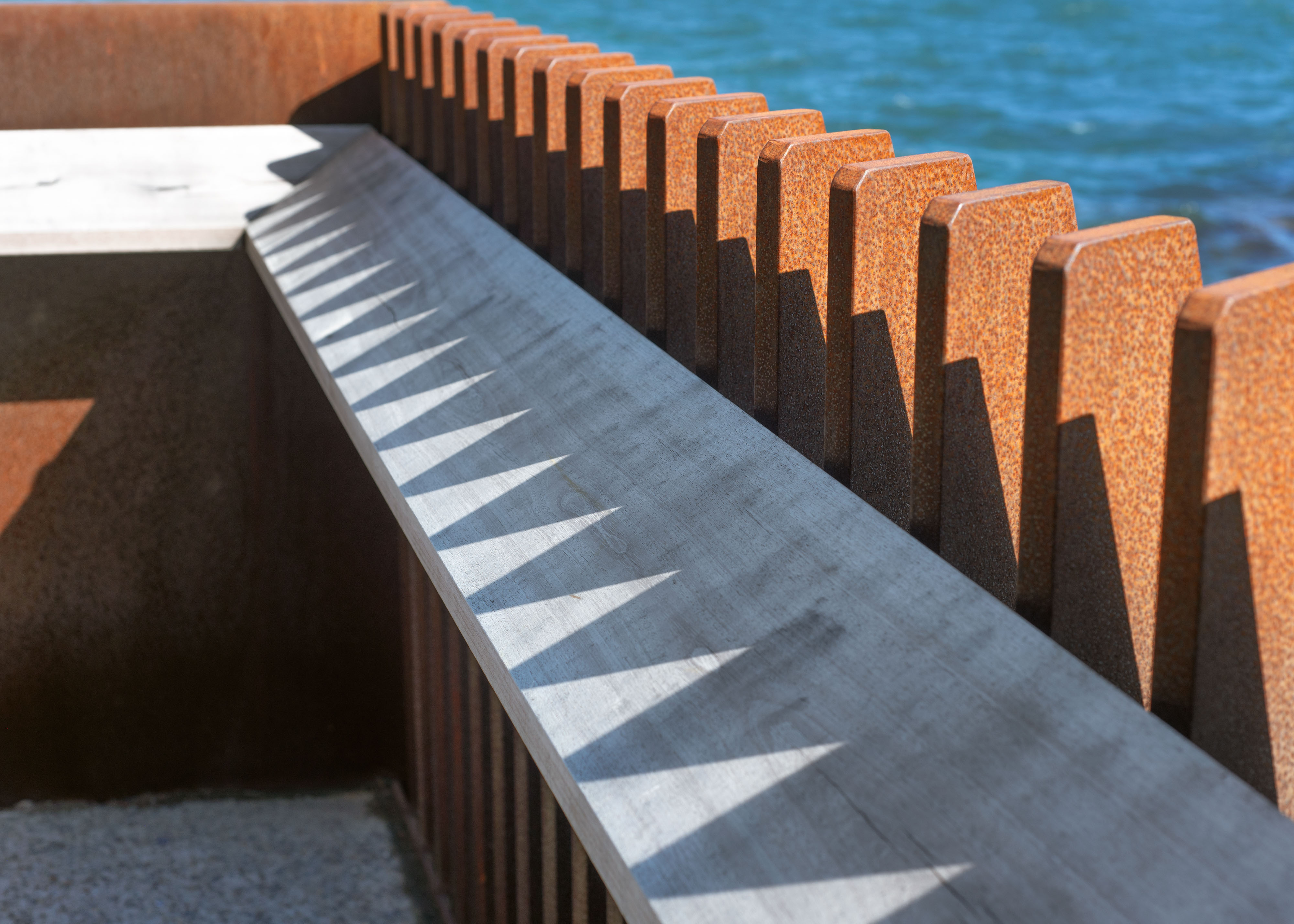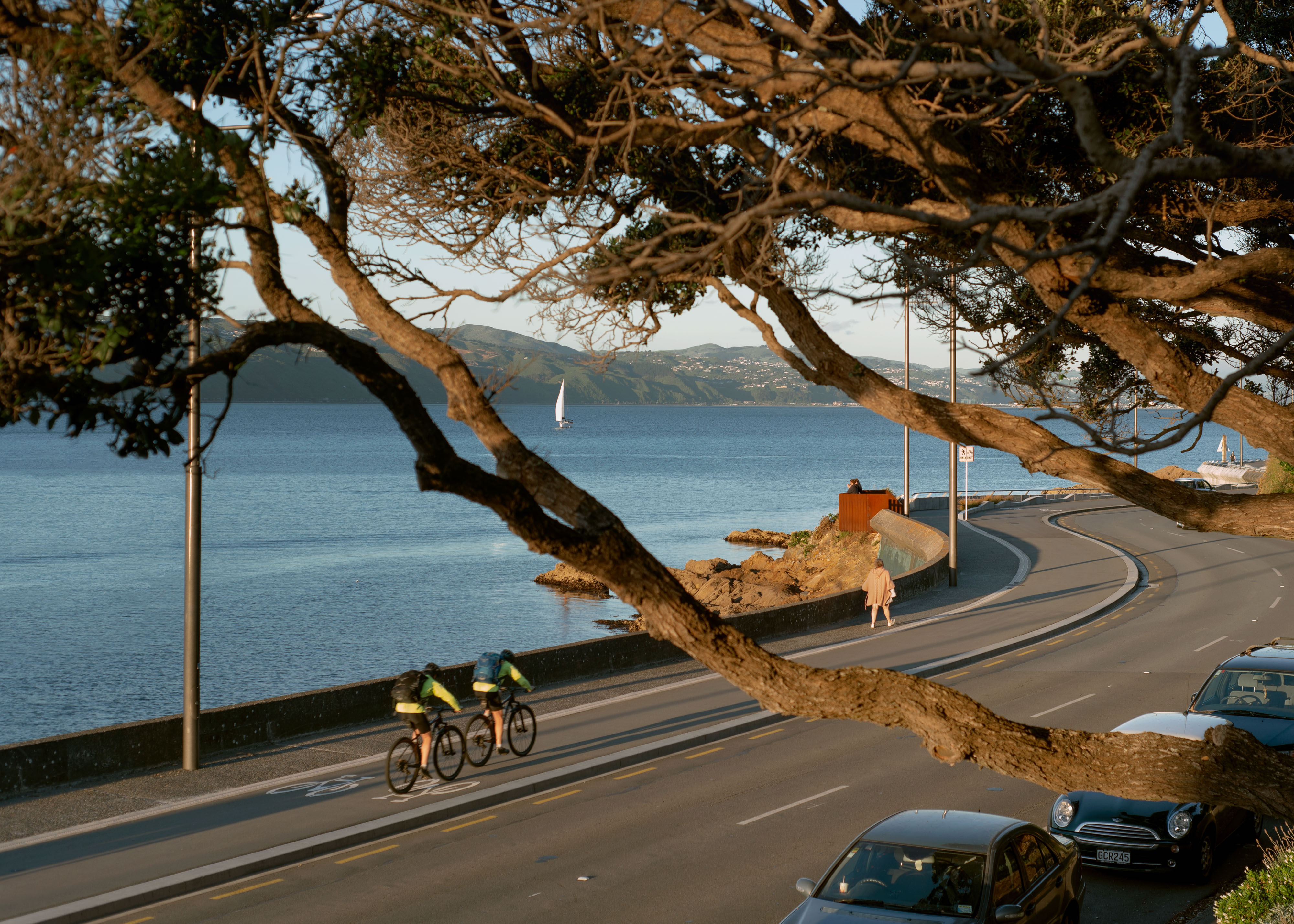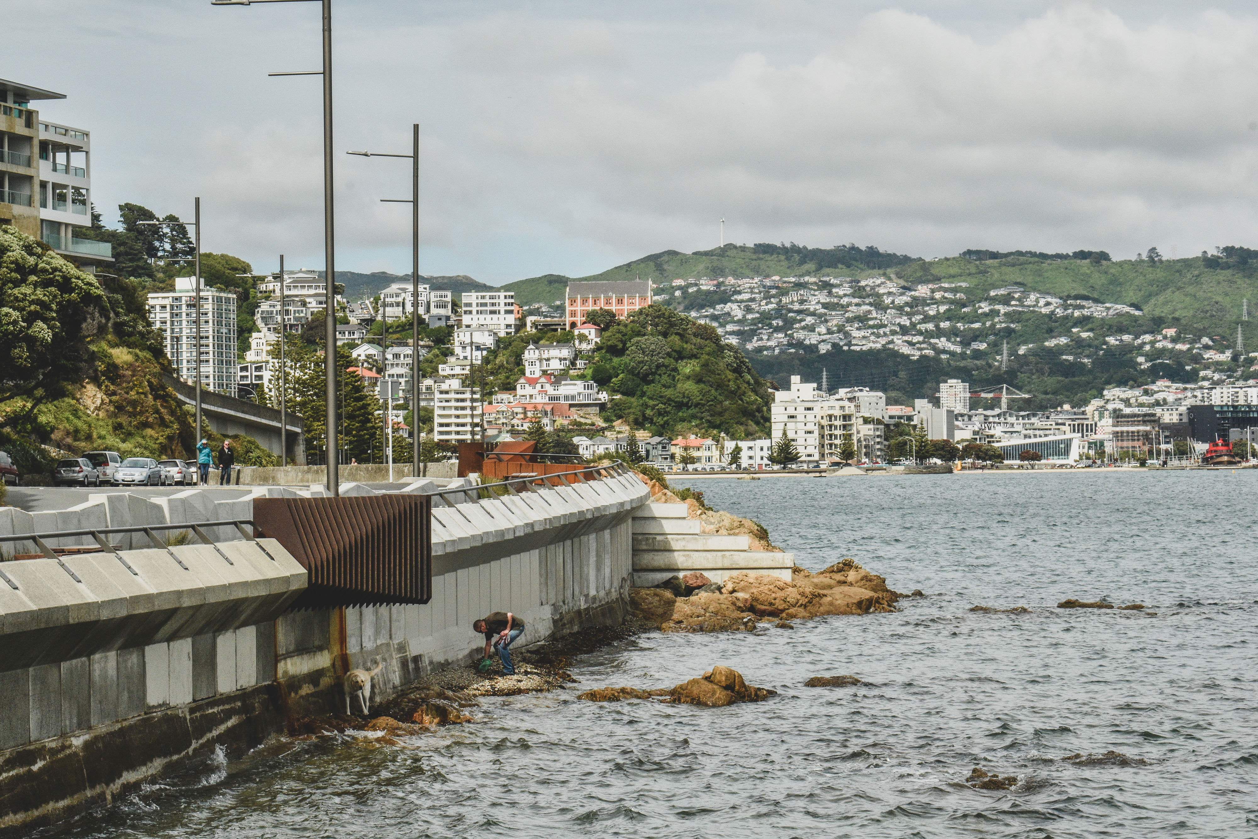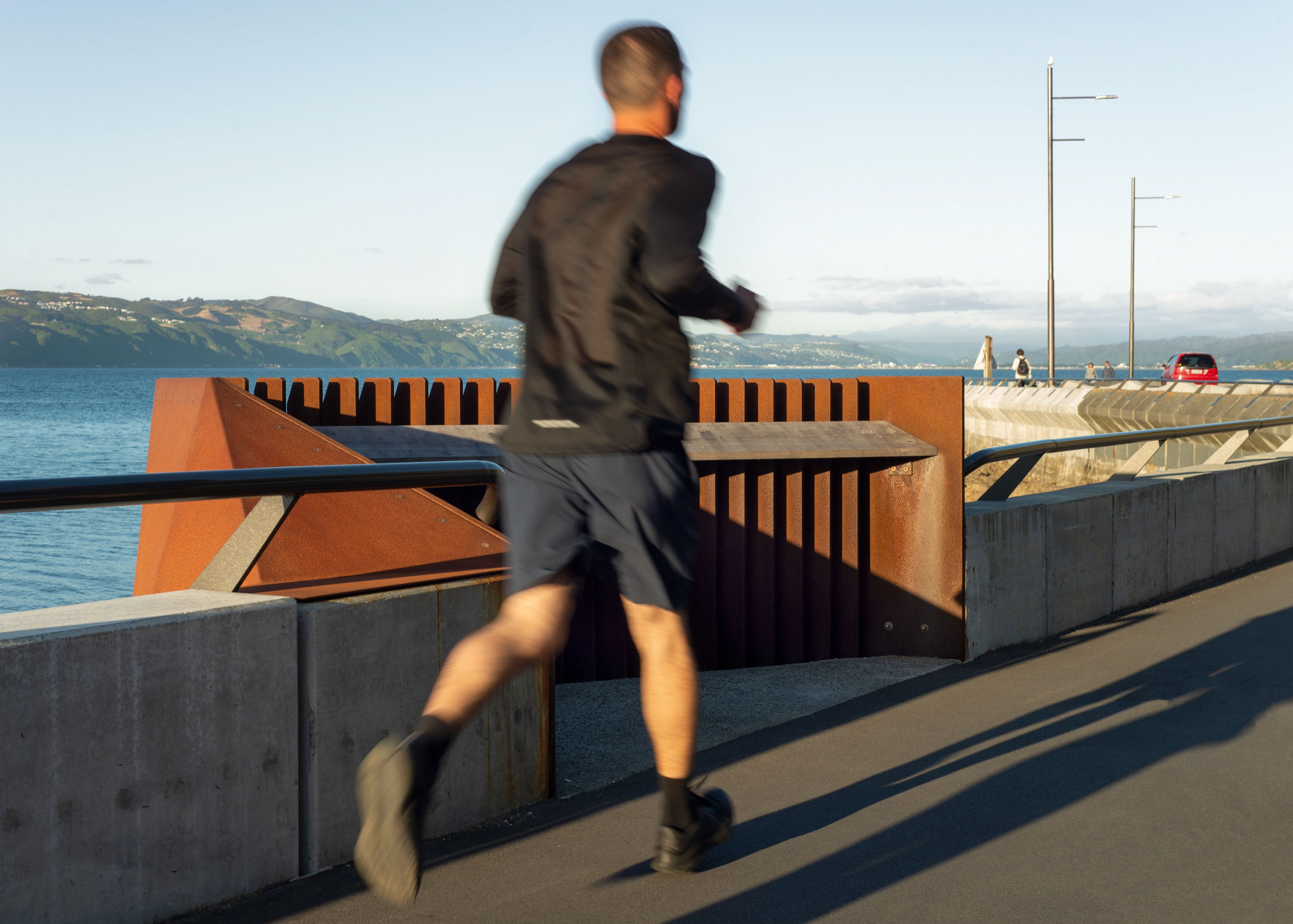 Ōmarukaikuru / Point Jerningham is a prominent section of walking and cycling infrastructure of Tahitai, (one tide, one journey) the coastal route from Oriental Bay around Evans Bay. Ōmarukaikuru comprises pathways for cyclists and pedestrians, a series of projecting outlooks, ‘barnacles’, resting spaces and access points to the rocky foreshore. The design references and responds to the context on many levels; cultural naming of whenua with Taranaki Whānui, tohu design, marine ecosystem, coastal resilience and natural rock formations of this rugged coast. A simple and rustic material palette of exposed aggregate and asphalt give clear cues for different path users, facetted precast concrete and corten steel for feature structures softened by hardwood timber inlays and hardy coastal planting celebrates this rugged exposed environment.